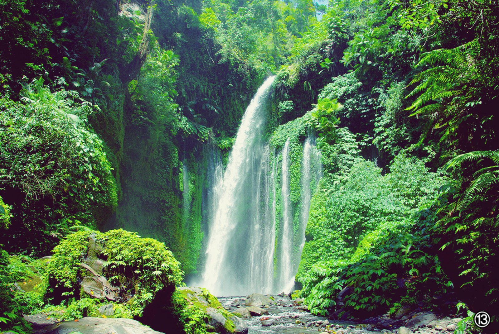 The most wonderful place to visit here is Sendang Gile waterfalls at Senaru. The water drops in a steep vertical flow down the hillside into a rocky river below.